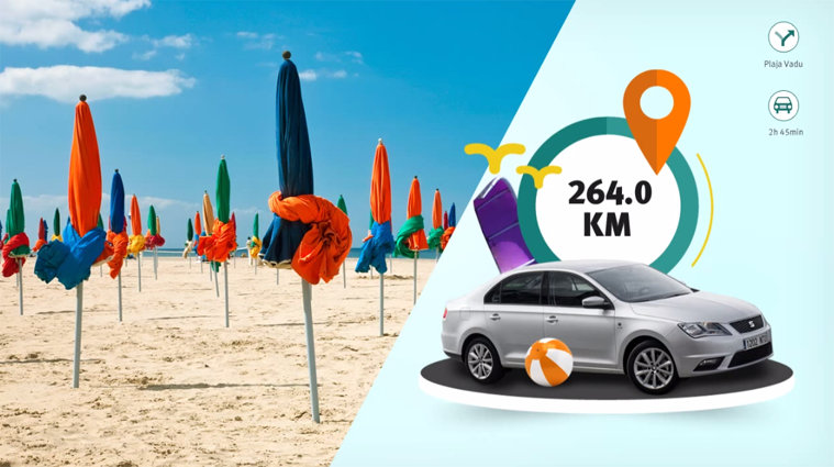 Al comprar un Seat a precio especial, la empresa pretendía acercar a los conductores a diferentes destinos para vacacionar: usando el GPS del celular y Google Maps, la app mostraba la distancia, el tiempo y el dinero que implicaría el viaje en auto, con la plata que los usuarios se ahorrarían con las ofertas especiales, podrían darse  algún gustito extra como unos nuevos luentes de sol.